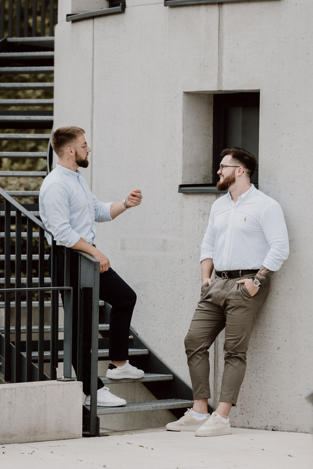 Am besten wählt ihr passende Farben und schlichte Outfits – das wirkt professionell. Ich berate euch gerne vorab, sodass ihr euch sicher sein könnt. Wichtig ist, dass ihr euch in eurem Outfit wohlfühlt, damit das Foto authentisch bleibt.